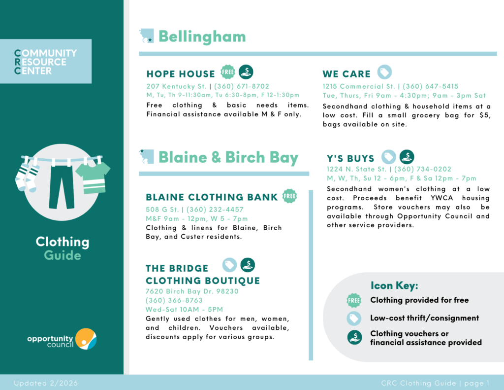 Library of PDF resource guides created by Opportunity Council’s Community Resource Center.